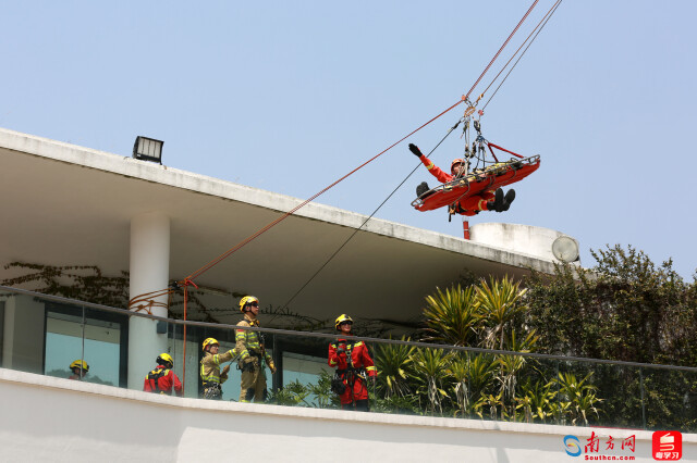 记者在高空救援科目演练现场看到,多名公共受伤因城市内涝被困高层,无法自行撤回。广东省消防救援总队8名消防指战员与港澳消防同仁摆布两侧建筑确立绳子锚点、扶植绳子系统,高效构建起专科救援系统,圆满完成伤员转运任务尽显“飞檐走壁”真才智。